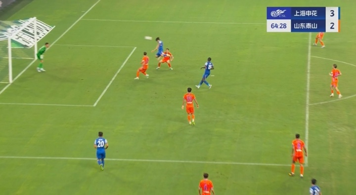 第63分钟,徐皓阳替补登场不到一分钟即头球破门,申花3-2再度领先泰山。