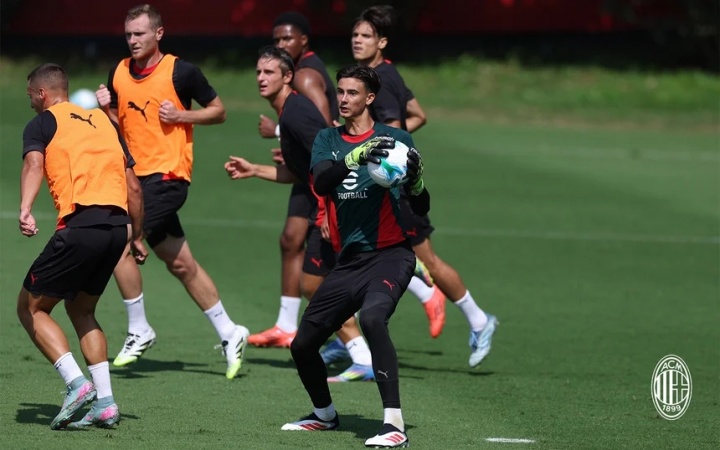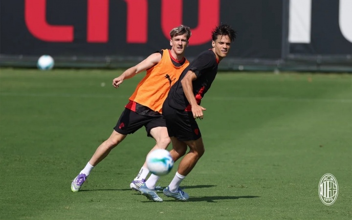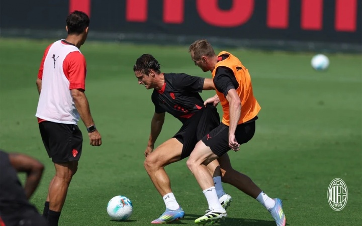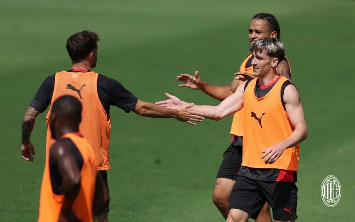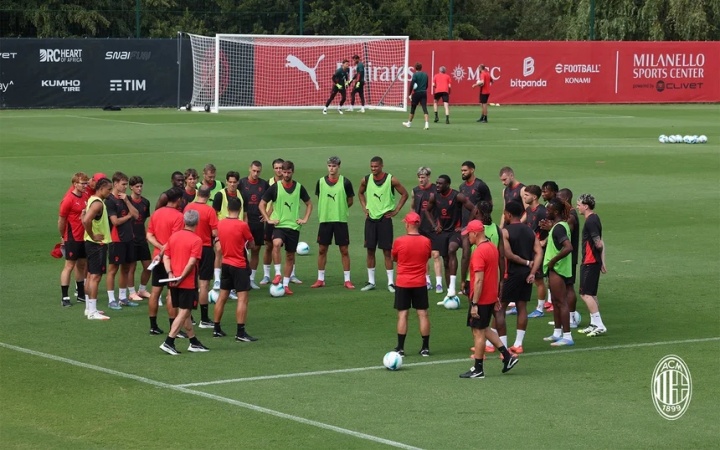 07月12日讯 AC米兰发布了最新的训练图集,主教练阿莱格里表情依旧亮眼。新援里奇看起来融入得不错,此前深陷转会传闻的后卫佳夫也参加了训练。